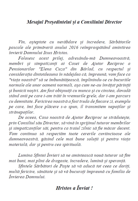 Stimați prieteni, Fiecare clipă care ne apropie de anul 2018 trezește în sufletele noastre simțăminte atât de diverse, încâlcite chiar, încât reticența pare a lua locul speranței. De ce?
