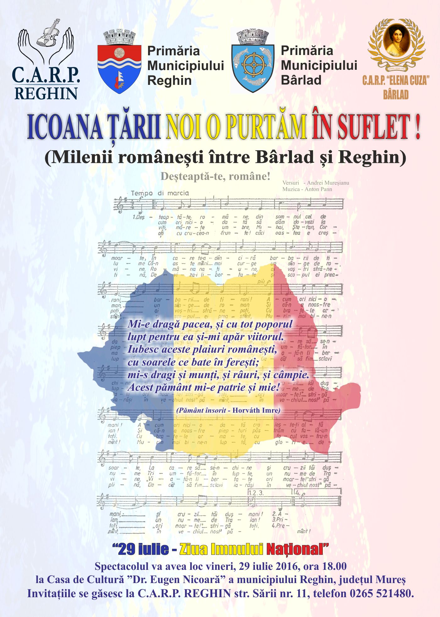 1 Decembrie 2016! Ziua Națională a României! Mărturisesc sincer că Speranța îmi dă curaj, iar Dumneavoastră, odată cu mine, știu că simțiți la fel. Multe conjuncturi ne-au ucis încrederea. Nădăjduiesc să nu se mai întâmple. Se vor aduna – sunt sigur – fiii acestui neam de prin străinătățurile unde slugăresc, vor redescoperi locul natal și Patria dintotdeauna, se vor ruga creștinește și vor pune umărul la propășirea României. Vor zidi case pentru ei și copiii lor, vor face șanțuri împotriva puhoaielor, vor reface codrii și vor umple dealurile cu vii, vor reface lanurile și vor crește stupinele, vor curăța imașurile pentru cirezi de vite și turme de oi, vor îmblânzi fiarele pădurii și vor redescoperi drumul spre școală și biserică, vor alerga la chemarea României pentru apărarea fruntariilor ei. Pentru că „tot ce-i românesc, nu piere!”