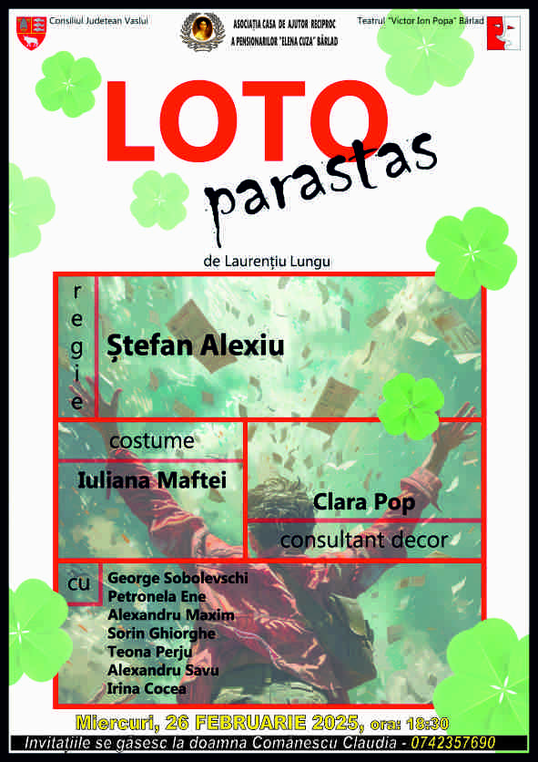 ”Loto Parastas este o satiră a timpurilor noastre la adresa dezumanizării pe care o trăim. Piesa lui Laurențiu Lungu, premieră absolută, este scrisă în stil comic și-și are acțiunea într-un sat situat între Bârlad și Șuletea. Deși foarte aproape de noi ca locație, personajele textului le găsim pe întreg teritoriul țării, atât la sat, cât și la oraș. Este o piesă despre tot mai mulți dintre noi. Cu siguranță unii vor râde, alții se vor arăta deranjați. Dacă la final de spectacol, după o porție bună de râs, spectatorul pleacă acasă poate puțin schimbat, poate cu un gând sau chiar cu o mică lacrimă în colț de ochi, înseamnă că ne-am făcut datoria și mesajul a fost transmis cu brio. Menirea teatrului, alături de școală, este să educe și să tragă semnale de alarmă atunci când lucrurile sau lumea o iau razna”. (Ștefan Alexiu, regizor)
