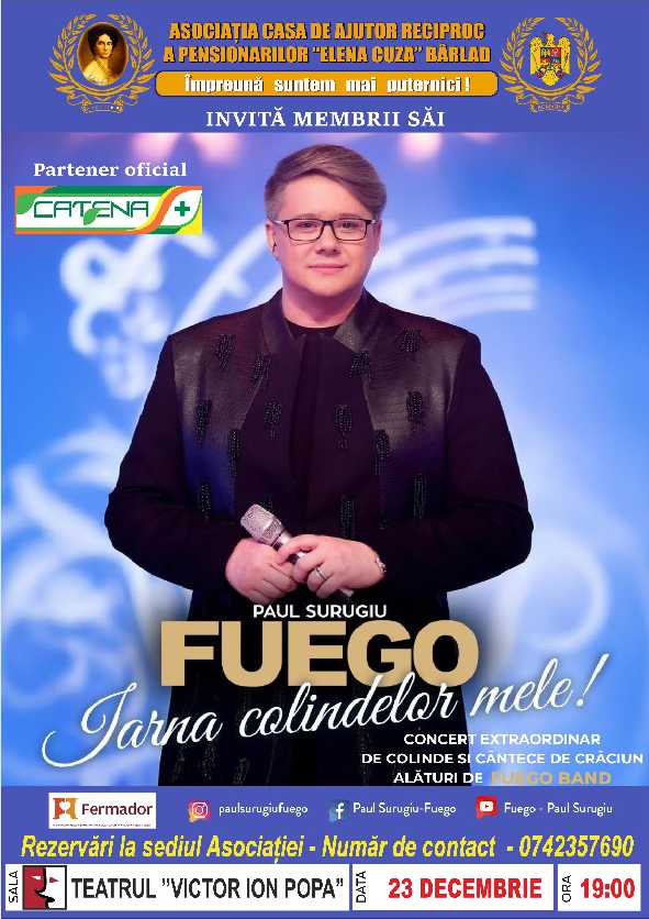 ” Anul acesta propun stare de bine, într-o iarnă aparte, pentru care-mi doresc fără menajamente să aibă coloana sonoră a colindelor mele! Va fi un concert cu piese mai noi și mai vechi, cu echipa mea, cu emoție, dar și cu mult râs, cu seninătate și cu valori aparte, despre care o să vă povestesc! Crăciunul nu este altceva decât bucuria de a fi împreună și eu vreau ca toată luna decembrie, pe oriunde ajung, să fim împreună și să înțelegem iar, mai bine și mai profund, esența acestei sărbători pe care o cânt de mai bine de 25 de ani! Vă aștept cu tot dragul la sala de spectacole, cu sufletul meu de colindă!” (Paul Surugiu Fuego)