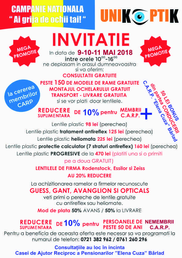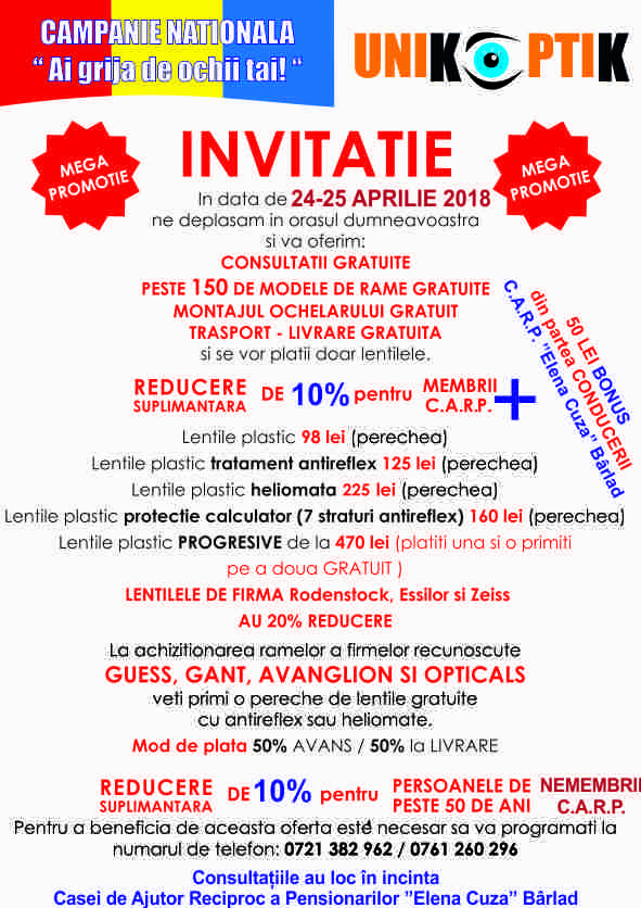 C.A.R.P. "Elena Cuza" Bârlad vă invită să vizionați o piesă de teatru extraordinară, unică, a marelui scriitor Liviu Rebreanu. Invitațiile se găsesc la ghișeul nr. 10 al Casei și la Teatrul "Victor Ion Popa" din Bârlad. Doar pentru membrii noștri!!!