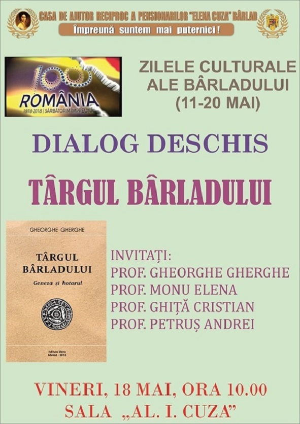 Casa de Ajutor Reciproc a Pensionarilor Elena Cuza din Bârlad vă invită să participați la lansarea carții Banca, așezările de pe șes, autori prof. Gheorghe Gherghe, prof. Grigore Doinița și Sidonia Elena Diaconu. Evenimentul va avea loc miercuri, 6 iunie 2018, ora 10.00 în Sala Al. I. Cuza a Casei. Vă așteptăm cu drag!