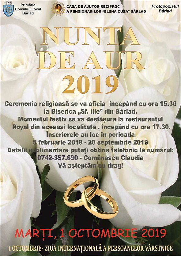 Duminică, 20 octombrie 2019, la biserica cu hramurile „Sf. Nicolaie” și „Sf. Cuvios Visarion Sarai” din localitatea Puiești, județul Vaslui, Asociația Casa de Ajutor Reciproc a Pensionarilor „Elena Cuza” din Bârlad și-a sărbătorit cuplurile membre care au împlinit 50 de ani de la căsătorie. Președintele Casei, Mihai Nicolaie împreună cu Responsabilul Sucursalei Puiești, Eugen Radu au fost nașii celor 6 cupluri aniversate. Slujba religioasă a fost oficiată de părintele paroh Alexandru Vasile și de dascălul Gheorghe Cucu. La final, din partea Asociației s-au acordat diplome aniversare, medalii și câte un ajutor nerambursabil în valoare de 50 de ron. Cuplurile sărbătorite anul acesta: - Carp Aurel și Adela: - Neagu Ioan și Viorica; - Opria Gheorghe și Georgeta; - Ocraim Vasile și Aurica; - Coștoi Ion și Maria; - Hriscu Neculai și Valerica.
