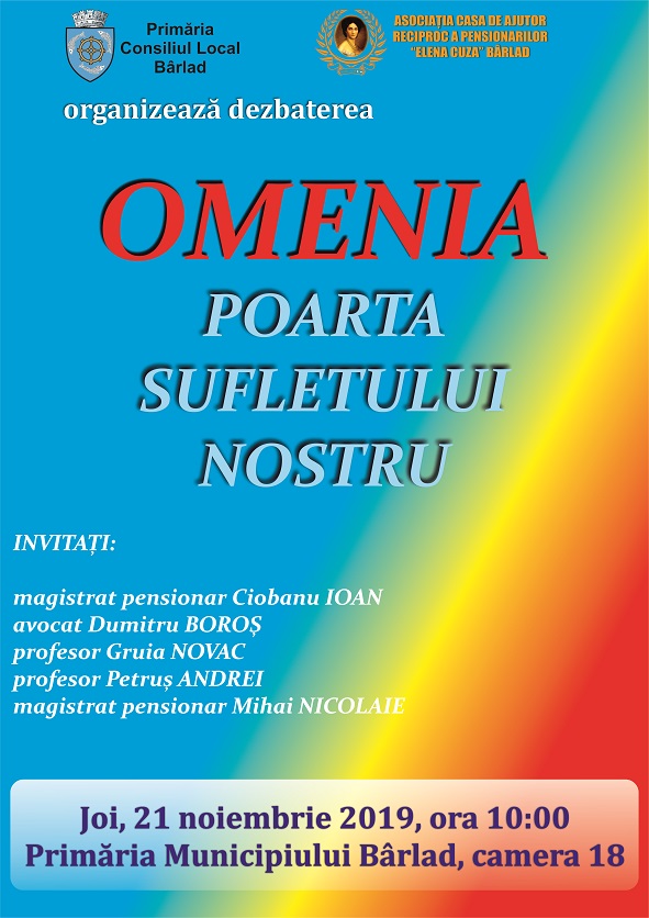 Ce este omenia și cum o putem recunoaște? Omenia nu are o anumită înfățișare, nici culoare, nici miros. Omenia se citește pe chip, omenia se citește prin gesturi și fapte. Cine ne poate descrie cel mai bine ce este omenia decât omul trecut prin viață, omul care trăiește omenește și care a văzut mai ales ce anume NU este omenia. În ziua de azi este ușor mai degrabă să dai dovadă de neomenie. Asociația Casa de Ajutor Reciproc a Pensionarilor „Elena Cuza” a organizat o dezbatere pe această temă: „Omenia-poarta sufletului nostru”, cu oameni care au ales să-și deschidă poarta sufletului (magistrat pensionar Ciobanu Ioan, avocat Dumitru Boroș, profesorul Gruia Novac, alături de președintele Casei de Ajutor Reciproc „Elena Cuza”, Mihai Nicolaie) pentru cei ce au nevoie de înțelepciunea vieții trăite frumos. Atât președintele Casei, în introducerea temei dezbătute, cât și domnul profesor Novac a...